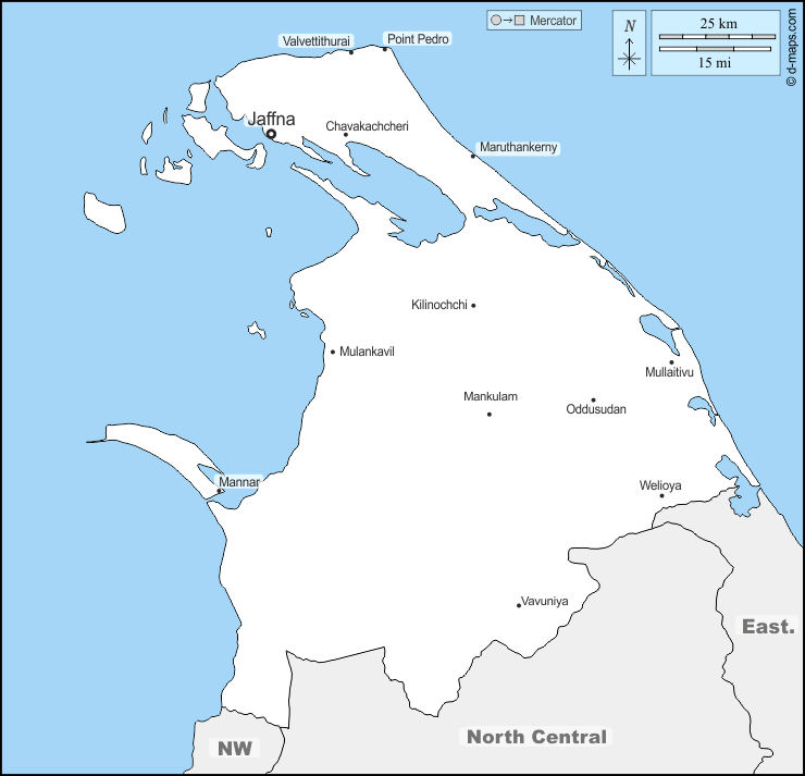 d-maps > 亚洲 > 斯里兰卡 > 北部省 > 边界, 主要城市, 名称
