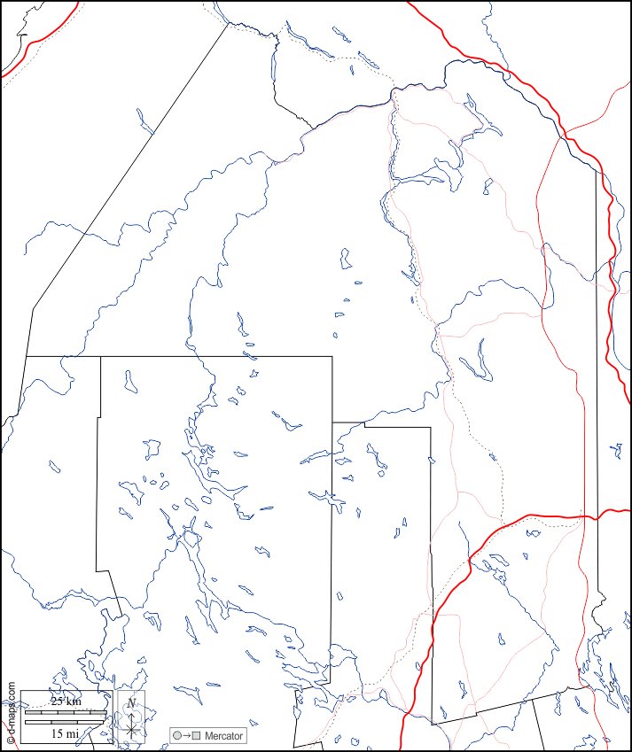 d-maps > 美国 > 缅因州 > 阿魯斯圖克縣 > 边界, 水文学, 道路, 白