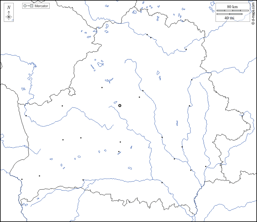 d-maps > 欧洲 > 白俄罗斯 > 白俄罗斯 > 边界, 水文学, 主要城市, 白