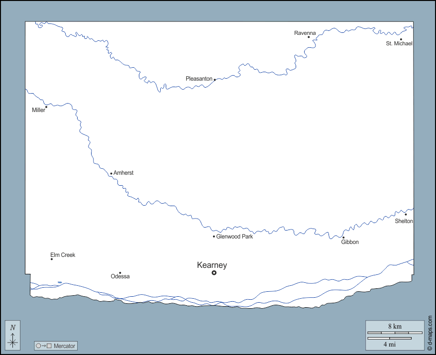 d-maps > 美国 > 内布拉斯加州 > 布法罗县 > 大纲, 水文学, 主要城市, 名称