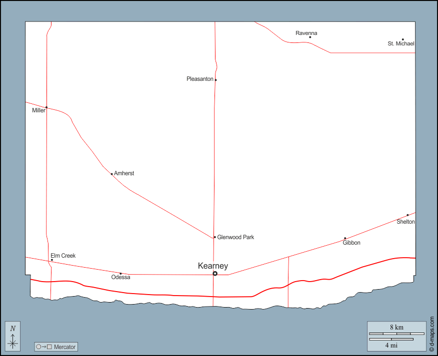 d-maps > 美国 > 内布拉斯加州 > 布法罗县 > 大纲, 主要城市, 道路, 名称
