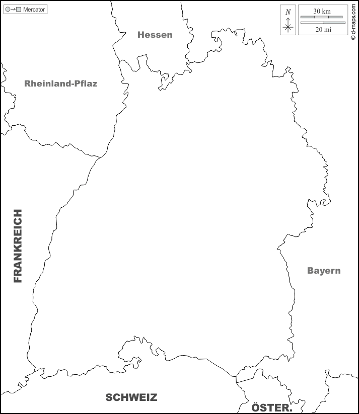 d-maps > 欧洲 > 德国 > 巴登-符腾堡州 > 边界, 名称, 白