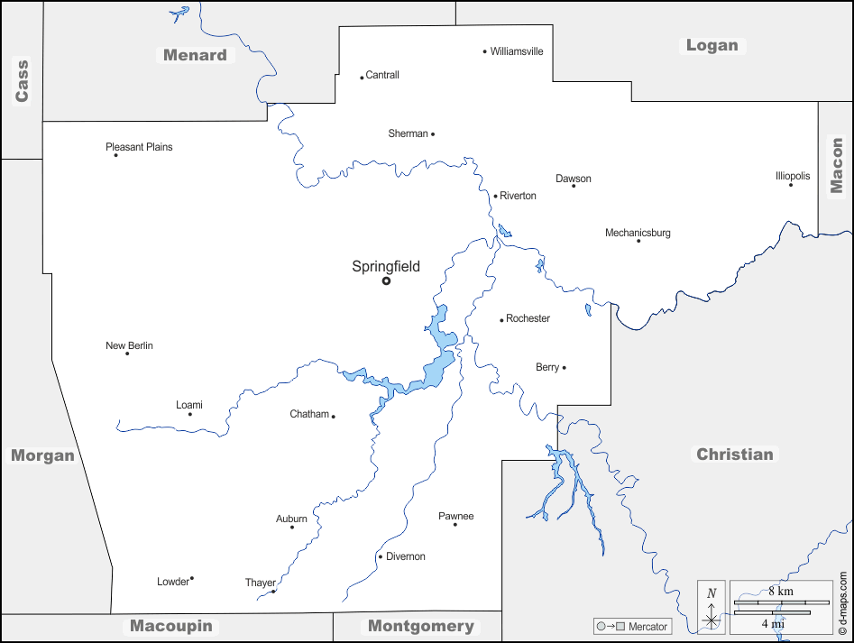 d-maps > 美国 > 伊利诺伊州 > 桑加蒙縣 > 边界, 水文学, 主要城市, 名称