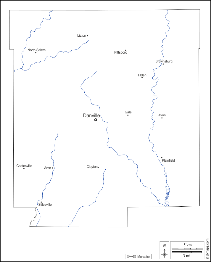 d-maps > 美国 > 印第安纳州 > 亨德里克斯郡 > 大纲, 水文学, 主要城市, 名称, 白