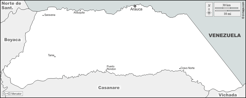 Arauca, Arauquita, Cravo Norte, Puerto Rondon, Saravena, Tame.
