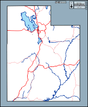 d-maps > 美国 > 犹他州 > 犹他州 > 边界, 水文学, 道路, 白