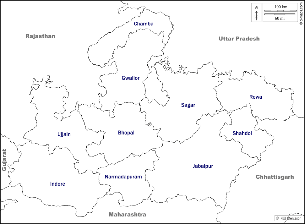 博帕尔 - 昌巴 - 瓜廖尔 - 印多尔 - 贾巴尔普尔 - 纳尔马达普拉姆 - 雷瓦 - 萨加尔 - 沙赫多尔 - 乌贾因