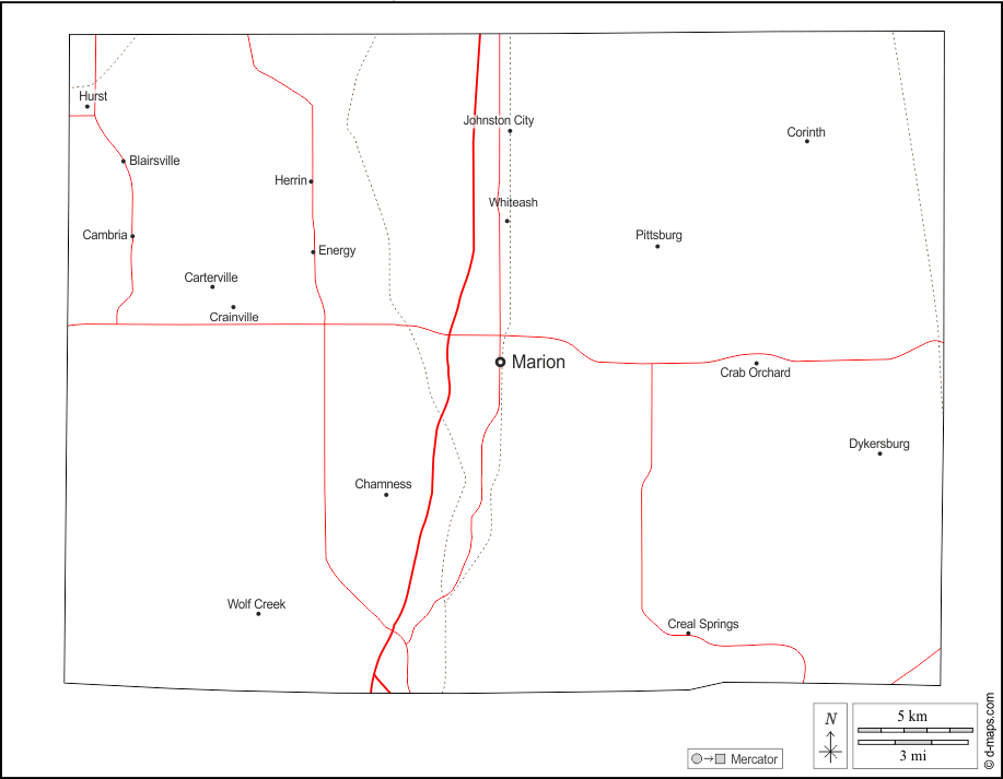 d-maps > 美国 > 伊利诺伊州 > 威廉姆森县 > 大纲, 主要城市, 道路, 名称, 白