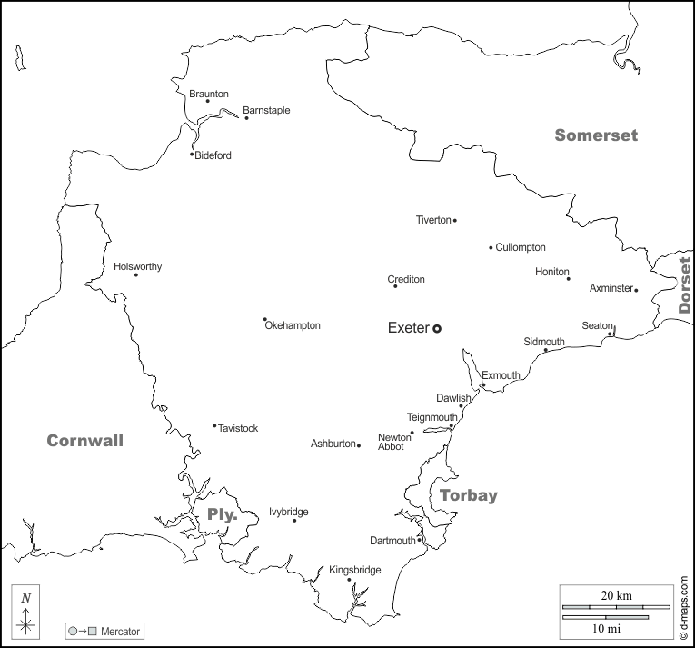 欧洲 > 英国 > 德文 > 边界, 主要城市, 名称, 白