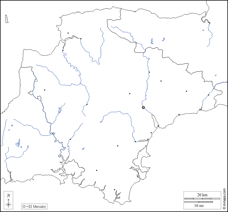 欧洲 > 英国 > 德文 > 边界, 水文学, 主要城市, 白