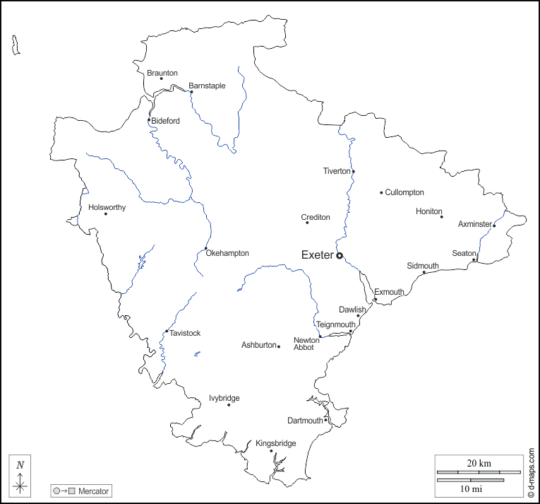 欧洲 > 英国 > 德文 > 大纲, 水文学, 主要城市, 名称, 白