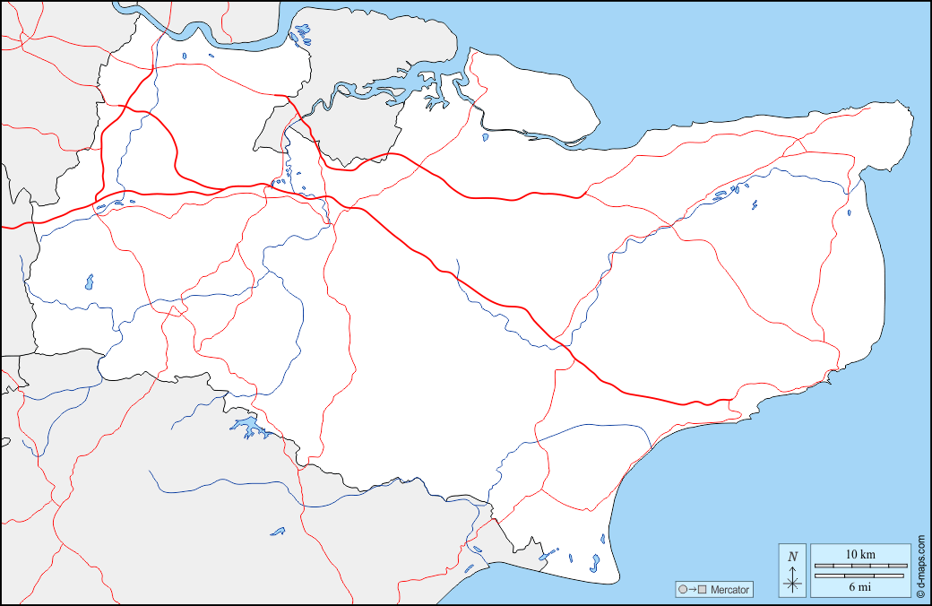 d-maps > 欧洲 > 英国 > 肯特郡 > 边界, 水文学, 道路