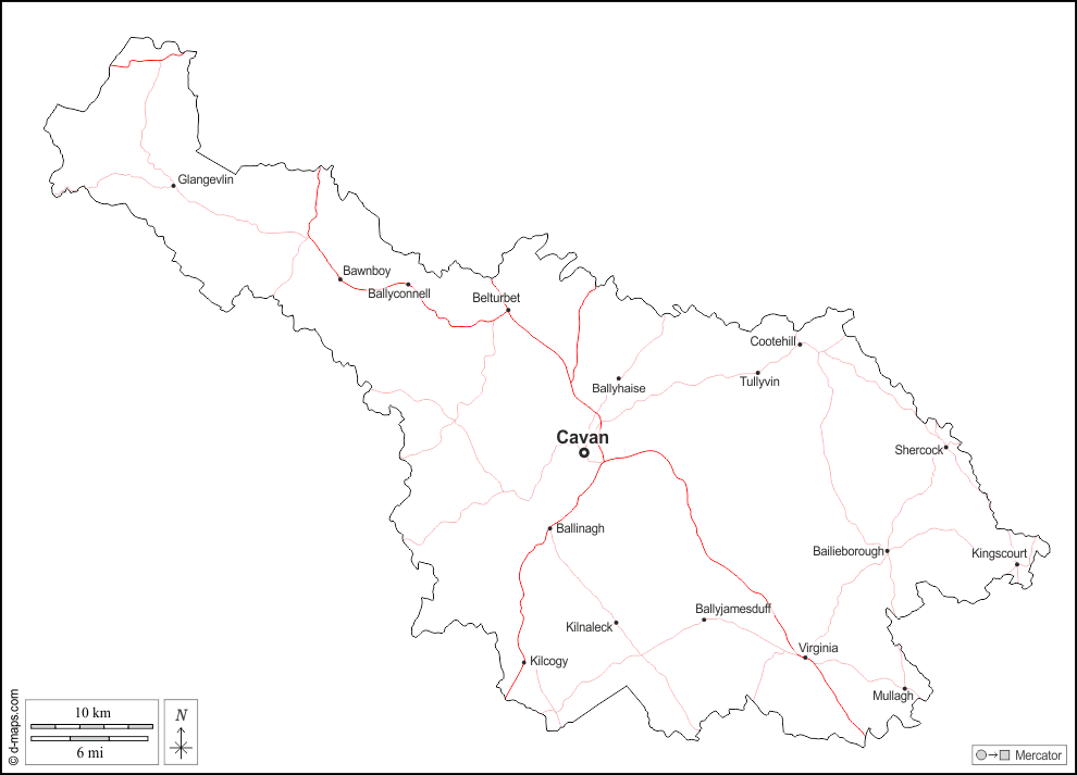 d-maps > 欧洲 > 爱尔兰 > 卡文 > 大纲, 主要城市, 道路, 名称, 白