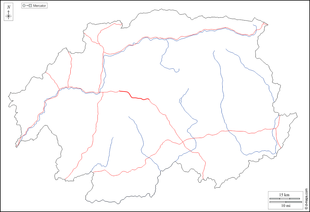 d-maps > Europa > Eslováquia > Banská Bystrica > contornos, hidrografia, estradas, branco