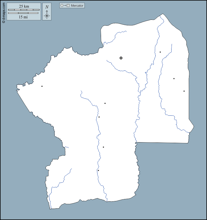d-maps > أفريقيا > توغو > المنطقة الوسطى > الخطوط العريضة, هيدروغرافيا, المدن الرئيسية