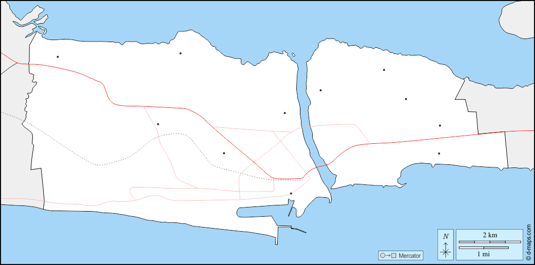 d-maps > أفريقيا > بنين > إدارة المناطق الساحلية > حدود, المدن الرئيسية, الطرق