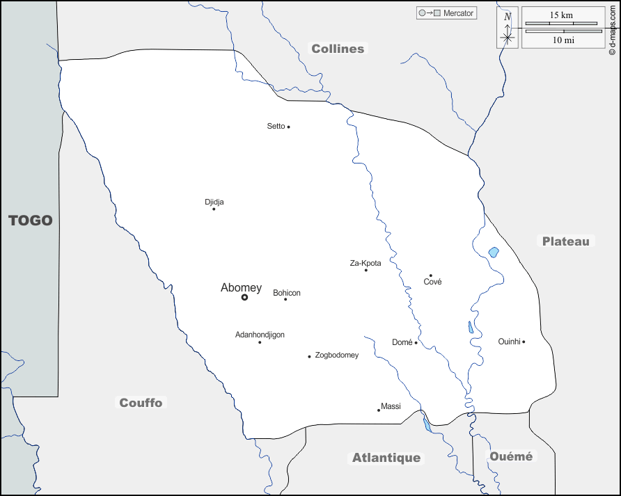 d-maps > أفريقيا > بنين > قسم زو > حدود, هيدروغرافيا, المدن الرئيسية, أسماء