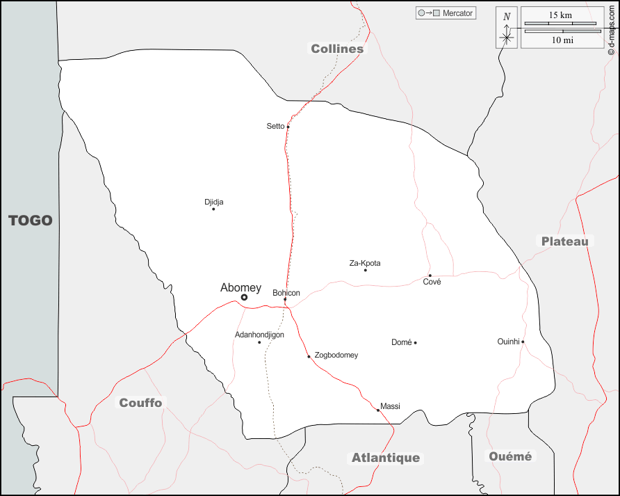 d-maps > أفريقيا > بنين > قسم زو > حدود, المدن الرئيسية, الطرق, أسماء