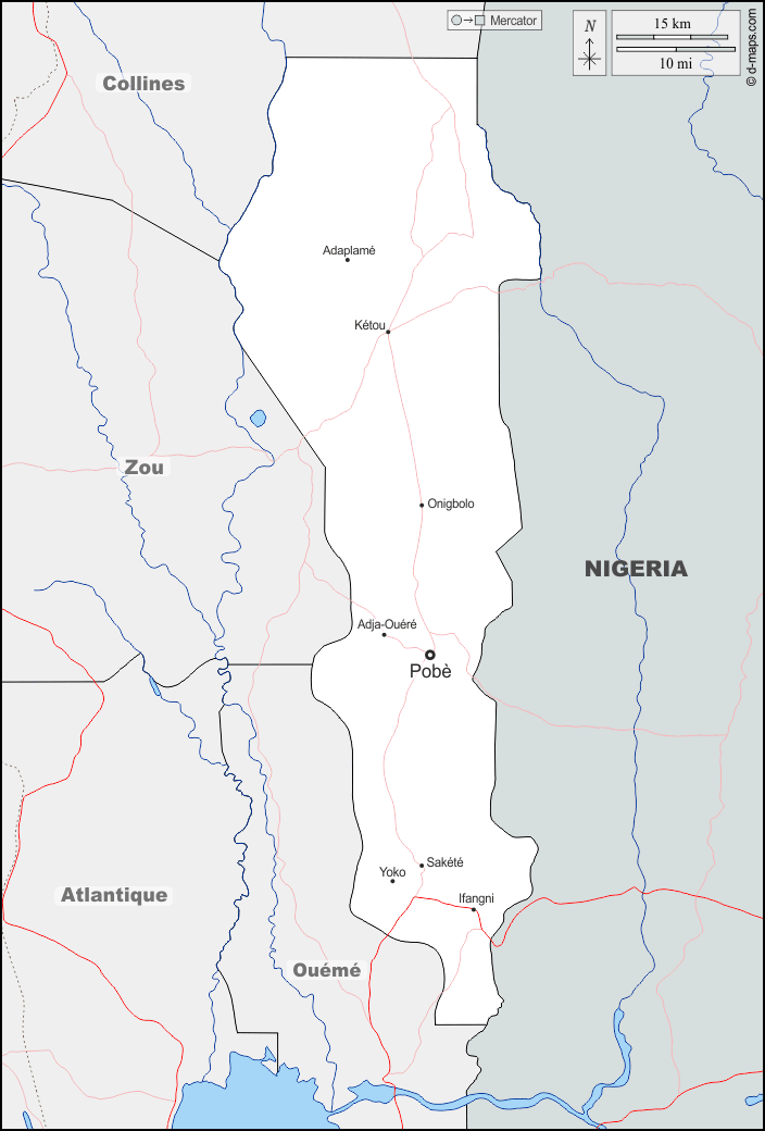 d-maps > أفريقيا > بنين > مقاطعة بلاتو > حدود, هيدروغرافيا, المدن الرئيسية, الطرق, أسماء