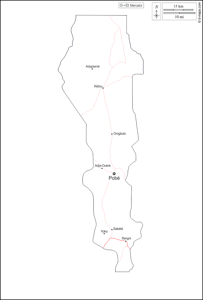 d-maps > أفريقيا > بنين > مقاطعة بلاتو > الخطوط العريضة, هيدروغرافيا, المدن الرئيسية, الطرق, أسماء, أبيض