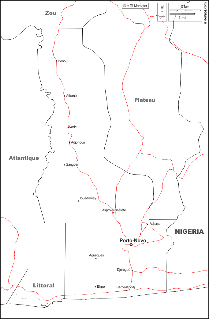 d-maps > أفريقيا > بنين > مقاطعة أويمي > حدود, المدن الرئيسية, الطرق, أسماء, أبيض