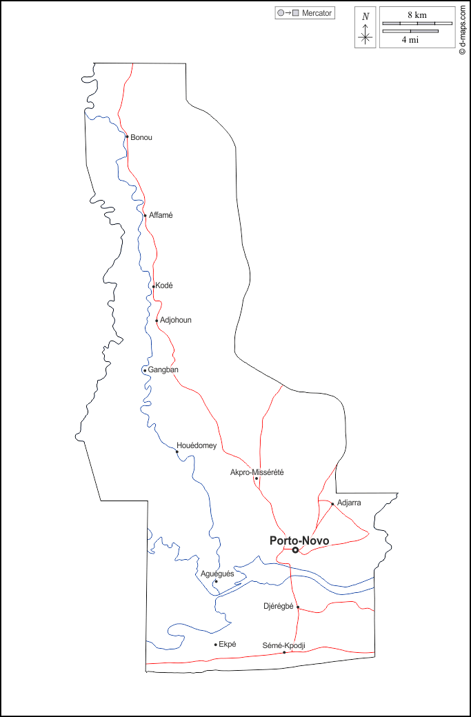 d-maps > أفريقيا > بنين > مقاطعة أويمي > الخطوط العريضة, هيدروغرافيا, المدن الرئيسية, الطرق, أسماء, أبيض