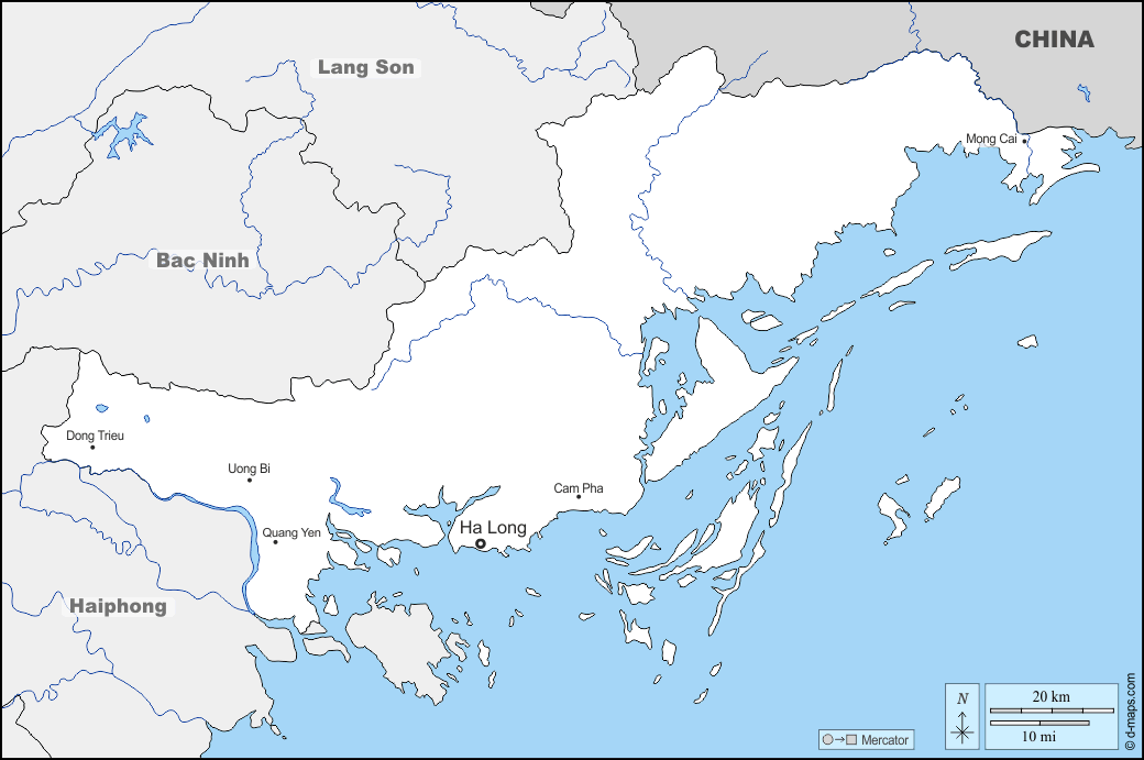 d-maps > اسيا > فيتنام > مقاطعة كوانغ نينه > حدود, هيدروغرافيا, المدن الرئيسية, أسماء