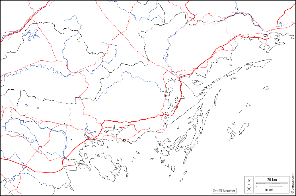 d-maps > اسيا > فيتنام > مقاطعة كوانغ نينه > حدود, هيدروغرافيا, المدن الرئيسية, الطرق, أبيض