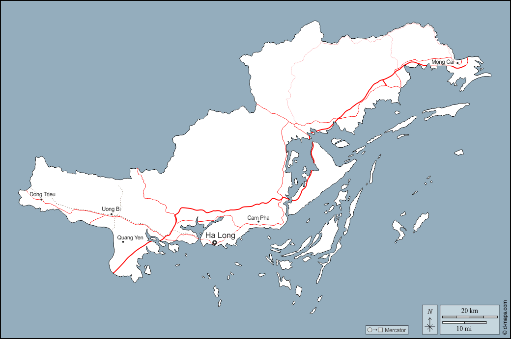 d-maps > اسيا > فيتنام > مقاطعة كوانغ نينه > الخطوط العريضة, المدن الرئيسية, الطرق, أسماء