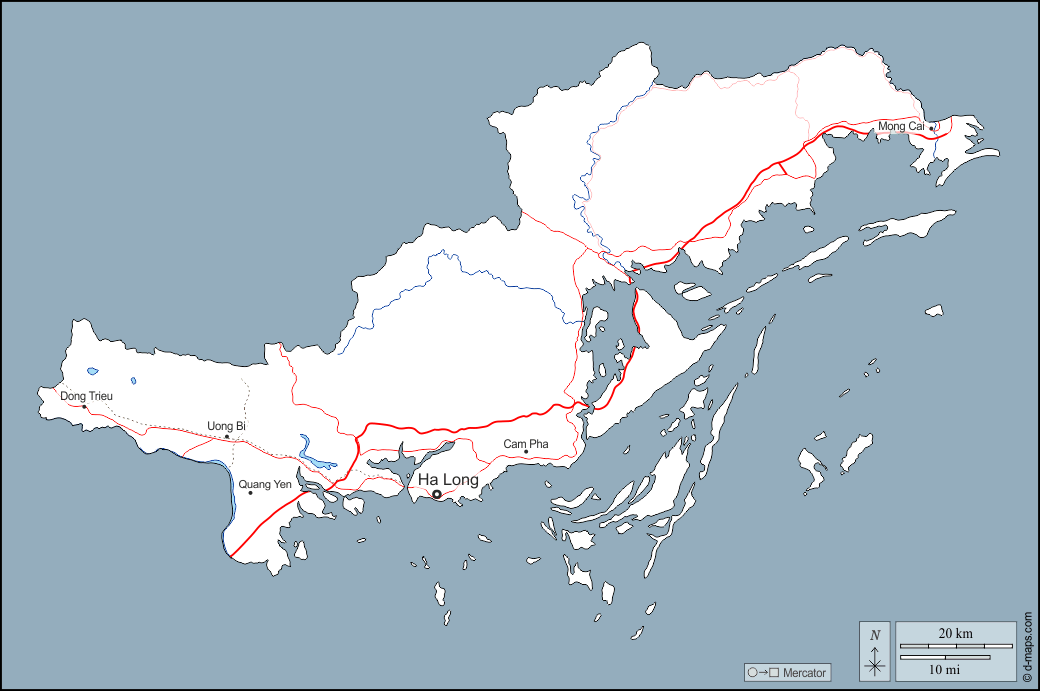 d-maps > اسيا > فيتنام > مقاطعة كوانغ نينه > الخطوط العريضة, هيدروغرافيا, المدن الرئيسية, الطرق, أسماء