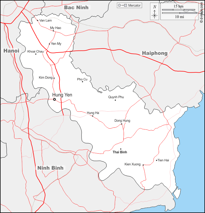 d-maps > اسيا > فيتنام > مقاطعة هونغ ين > حدود, المدن الرئيسية, الطرق, أسماء