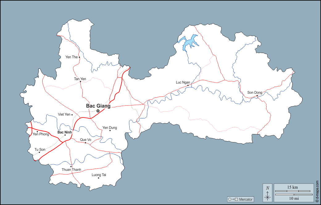 d-maps > اسيا > فيتنام > مقاطعة باك نينه > الخطوط العريضة, هيدروغرافيا, المدن الرئيسية, الطرق, أسماء