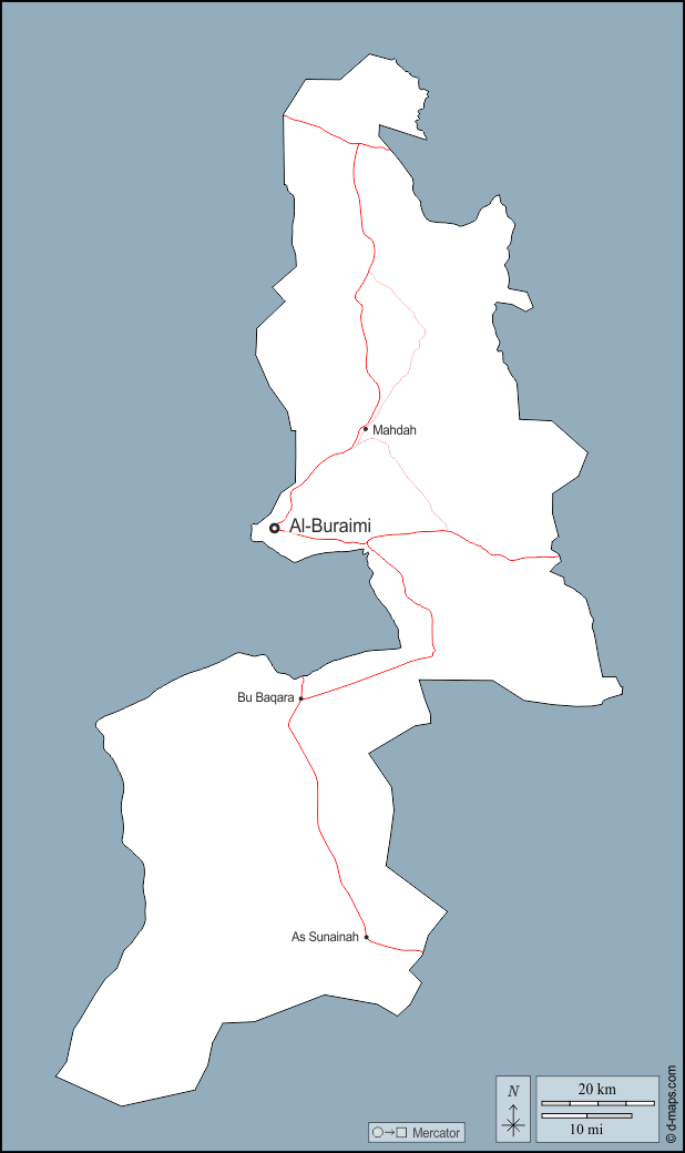 d-maps > سلطنة عمان > مُحَافَظَة ٱلْبُرَيْمِي > الخطوط العريضة, المدن الرئيسية, الطرق, أسماء