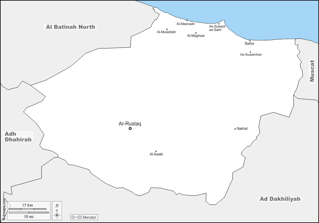 d-maps > سلطنة عمان > محافظة جنوب الباطنة > حدود, المدن الرئيسية, أسماء