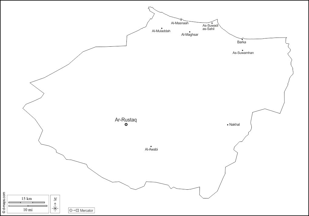 d-maps > سلطنة عمان > محافظة جنوب الباطنة > الخطوط العريضة, المدن الرئيسية, أسماء, أبيض