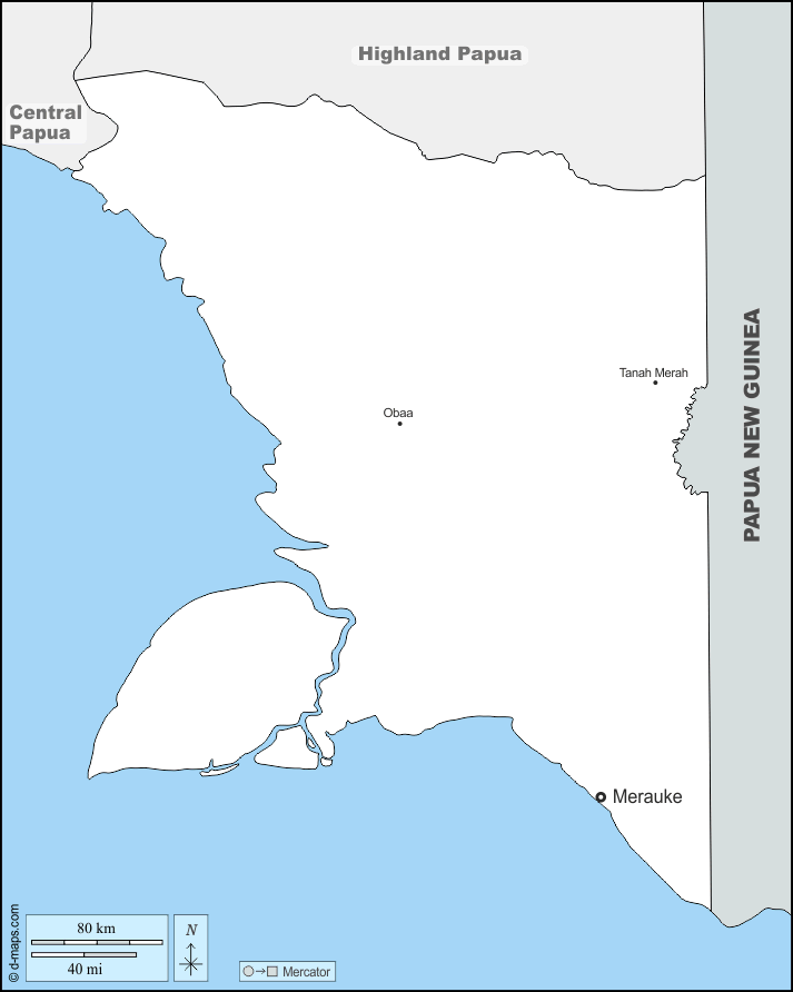 d-maps > اسيا > إندونيسيا > بابوا الجنوبية > حدود, المدن الرئيسية, أسماء