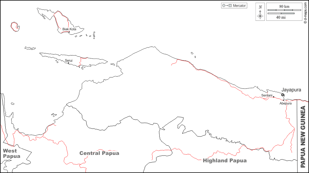 d-maps > اسيا > إندونيسيا > بابوا > حدود, المدن الرئيسية, الطرق, أسماء, أبيض