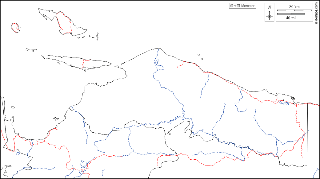 d-maps > اسيا > إندونيسيا > بابوا > حدود, هيدروغرافيا, المدن الرئيسية, الطرق, أبيض
