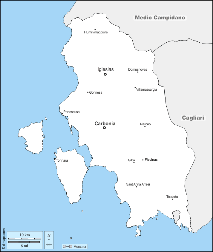 d-maps > أوروبا > إيطاليا > مقاطعة سولسيس إغليسينتي > حدود, المدن الرئيسية, أسماء