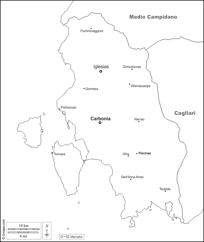d-maps > أوروبا > إيطاليا > مقاطعة سولسيس إغليسينتي > حدود, المدن الرئيسية, أسماء, أبيض