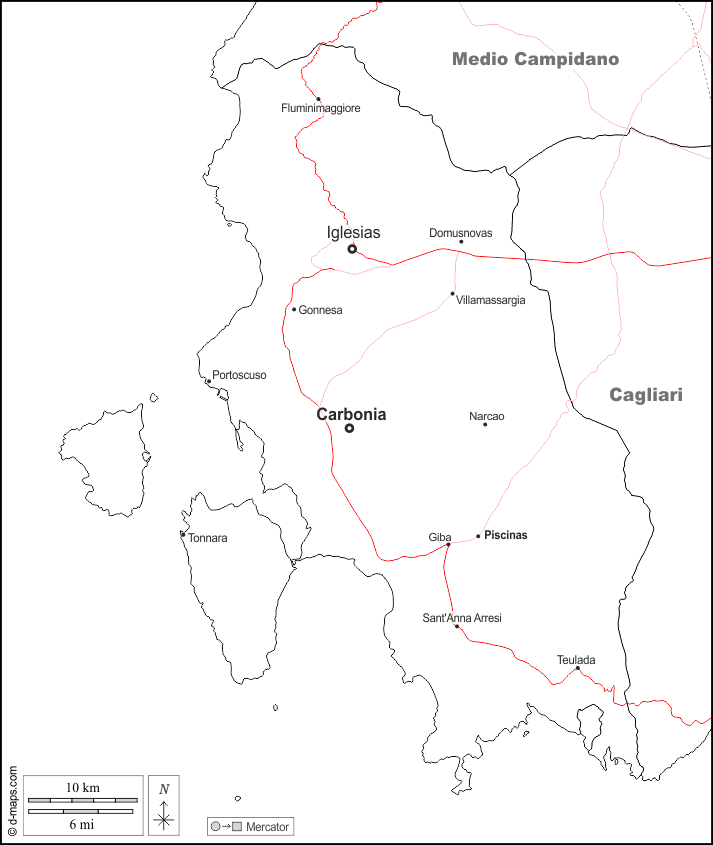 d-maps > أوروبا > إيطاليا > مقاطعة سولسيس إغليسينتي > حدود, المدن الرئيسية, الطرق, أسماء, أبيض