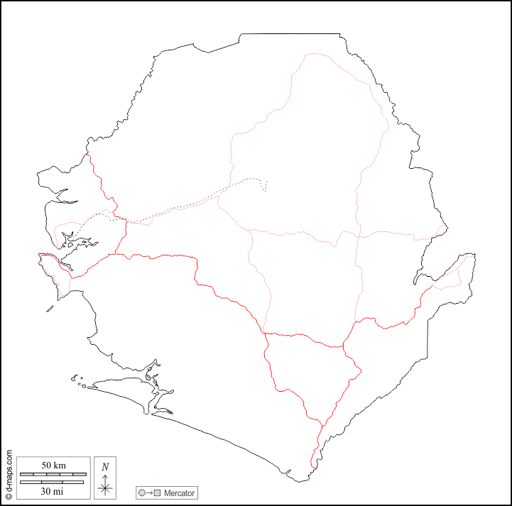 d-maps > أفريقيا > سيراليون > الخطوط العريضة, الطرق, أبيض