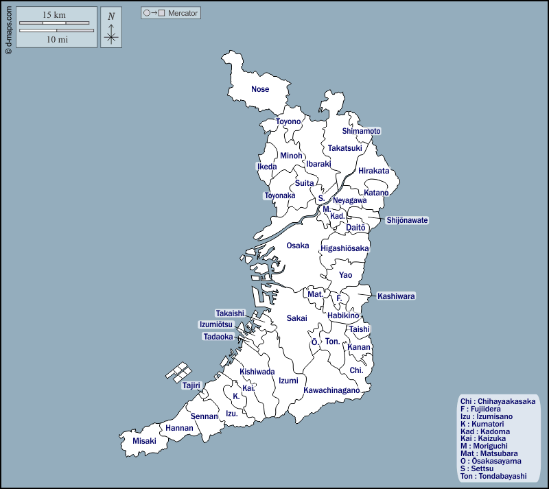 d-maps > Asien > Japan > Osaka > Umrisse, Gemeinden, Namen