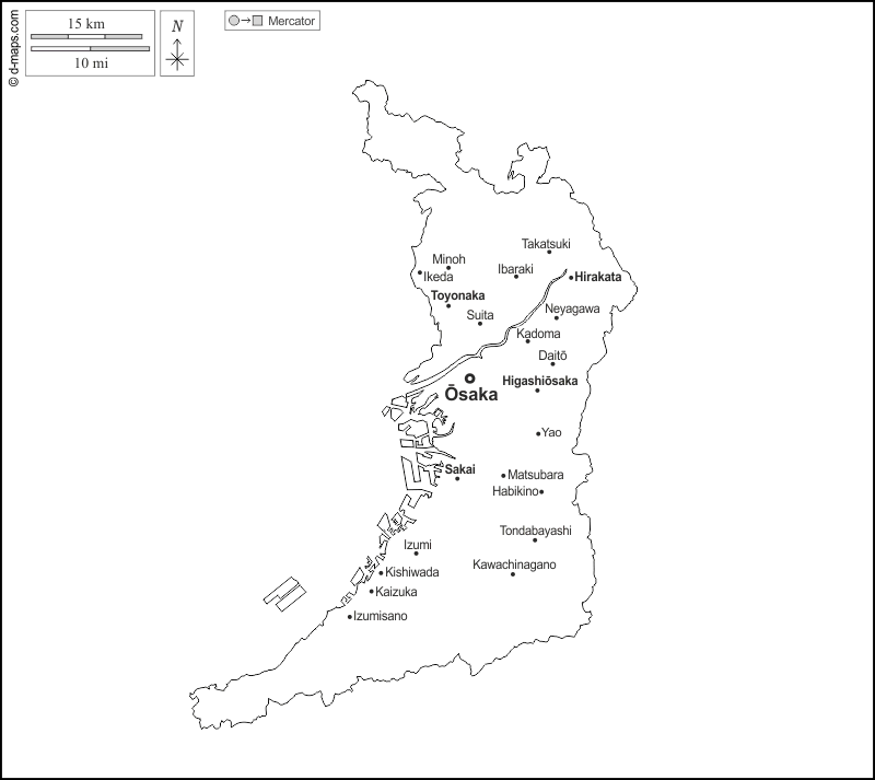 d-maps > Asien > Japan > Osaka > Umrisse, Wichtige Städte, Namen, weiß