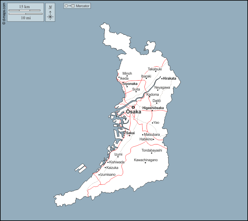 d-maps > Asien > Japan > Osaka > Umrisse, Wichtige Städte, Straßen, Namen