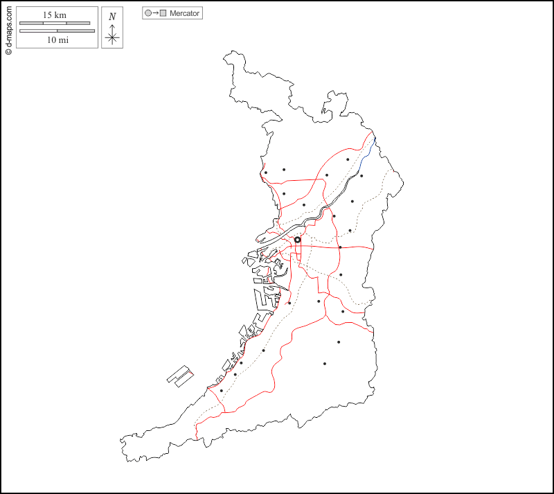 d-maps > Asien > Japan > Osaka > Umrisse, Hydrografie, Wichtige Städte, Straßen, weiß