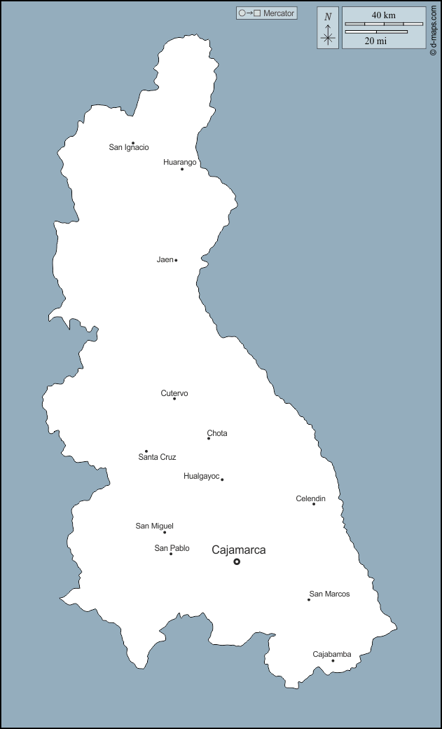 d-maps > Amerika > Peru > Cajamarca > Umrisse, Wichtige Städte, Namen