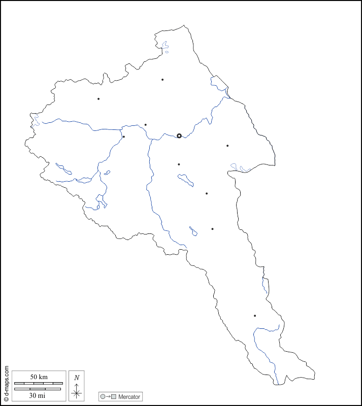 d-maps > Asien > Mongolei > Bajan-Ölgii-Aimag > Umrisse, Hydrografie, Wichtige Städte, weiß
