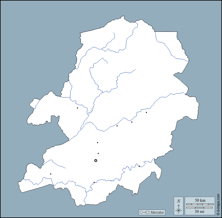 d-maps > Afrika > Kamerun > Region Centre > Umrisse, Hydrografie, Wichtige Städte