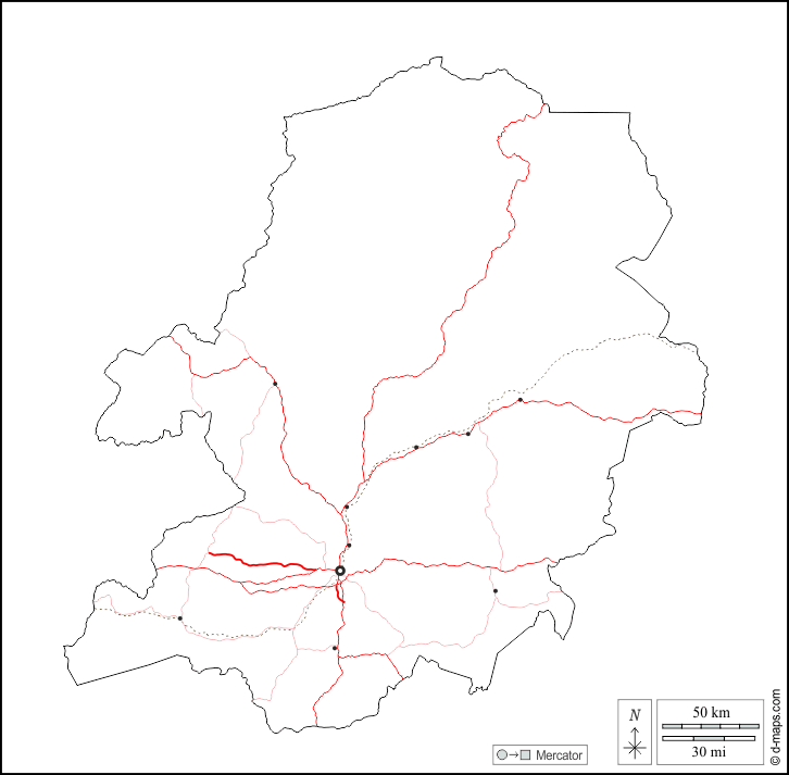 d-maps > Afrika > Kamerun > Region Centre > Umrisse, Wichtige Städte, Straßen, weiß